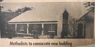 Fortunately for the church and for the other churches of the city a community Church building was soon provided which stood at the corner of Avenue J and First Street. This building sufficed for church services and for a meeting place for all other community organizations during the week and was still use by the Methodist as their first building was being constructed by J.E. Smith, a church member and the contractor. This building was begun early in 1919 and was put into use before the end of that year. That frame structure was built on the site of the present sanctuary and was used until 1949 when it was moved westward to be used as a church school building after the new Church was ready for use.