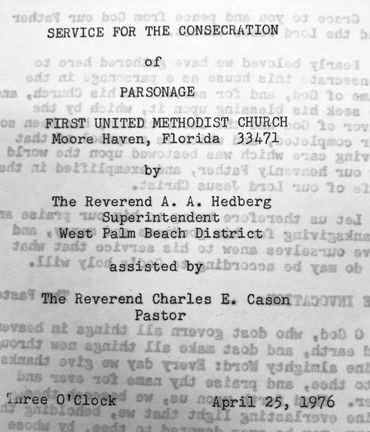 First Methodist Church, Moore Haven has been served by 28 devoted pastors at the time of these writings: